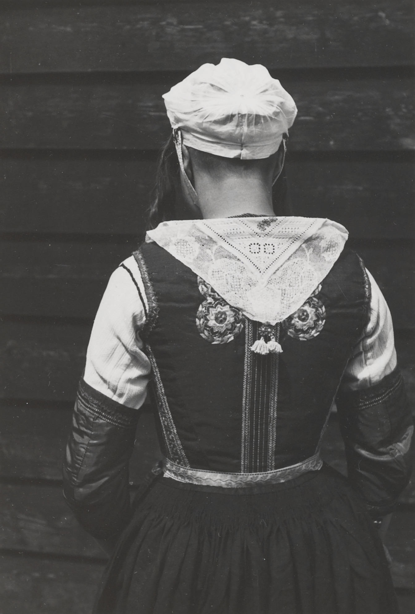Vrouw in Staphorster streekdracht, Meppel, 1960 (zwa...