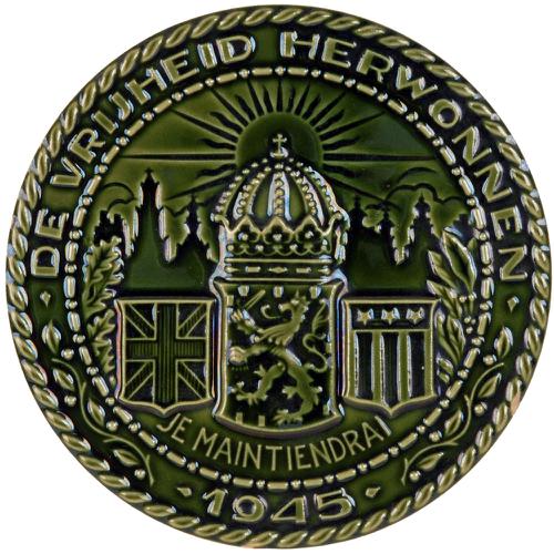 Wandbord: "De vrijheid herwonnen Je maintiendrai 1945"