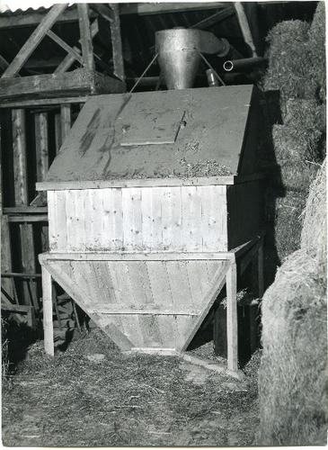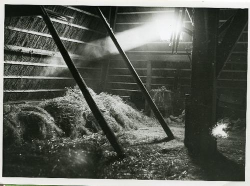 Foto in zwart-wit van een hooizolder door J.D. de Jo...