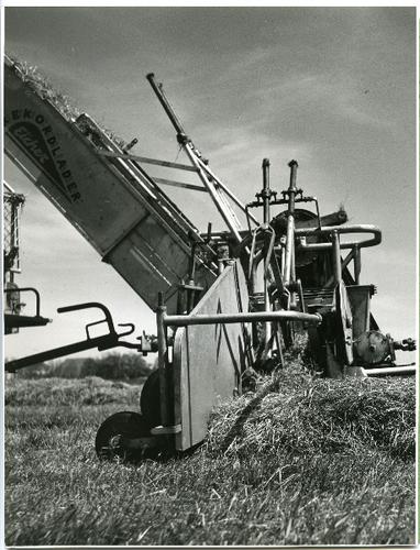 Foto in zwart-wit van een Junes Minos balenpers door...