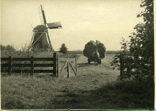 Foto in zwart-wit van een harkkeerder door J.D. de Jong