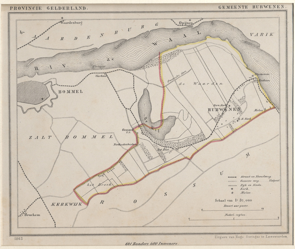 kaartje gemeente Hurwenen gelegen aan de rivier de W...