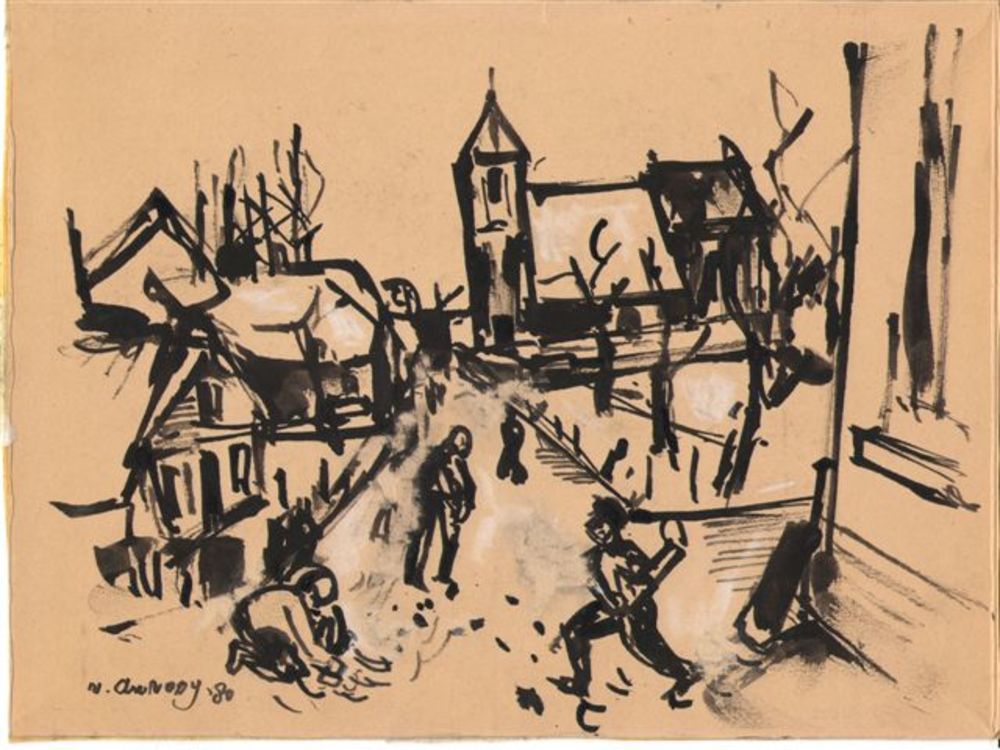 aquarel, dorpsgezicht 1980 Jan van Anrooy