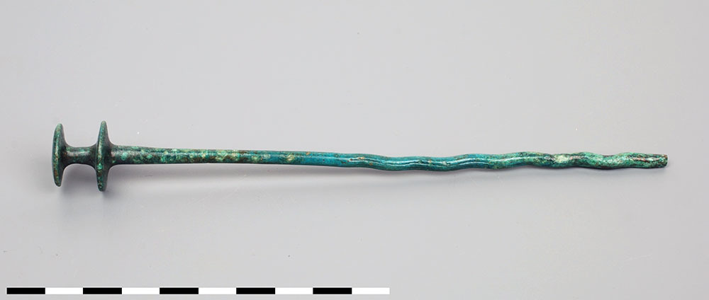 Lange haar- of kledingnaald van brons uit de prehist...