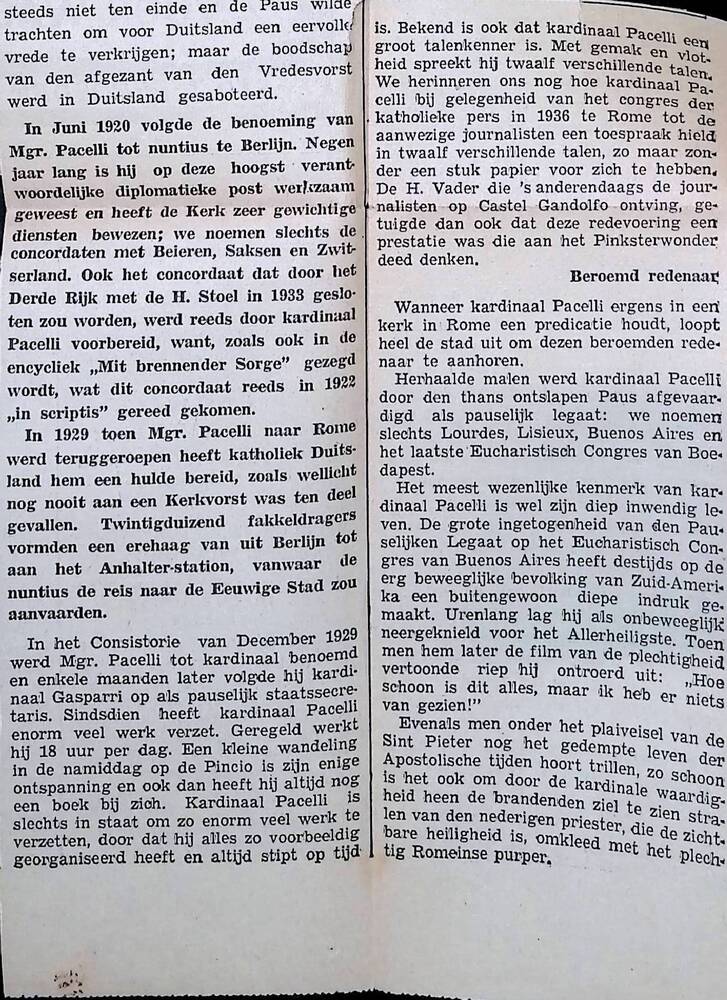 Kardinaal Pacelli, kerkvorst en groot geleerde. Nege...