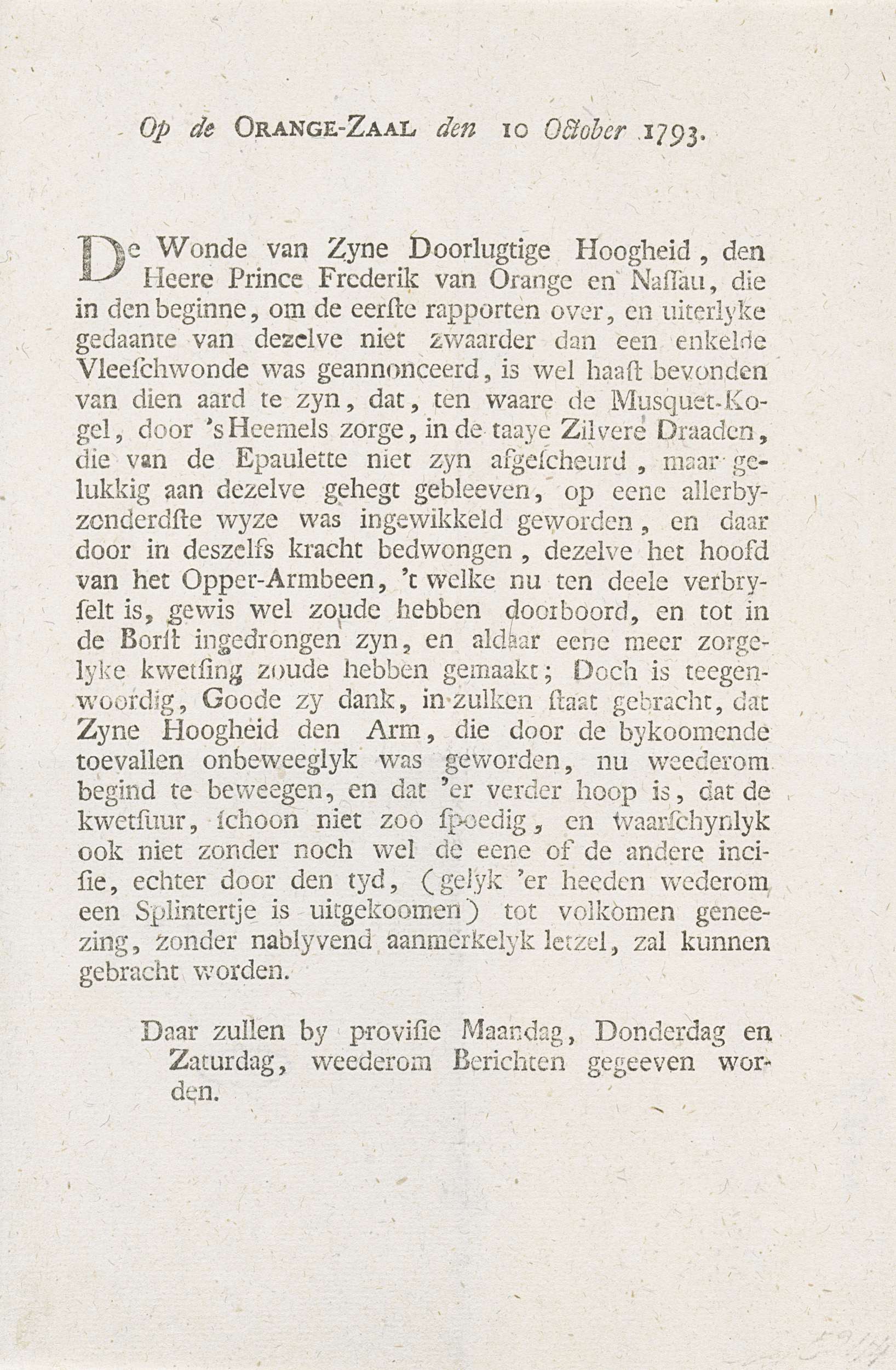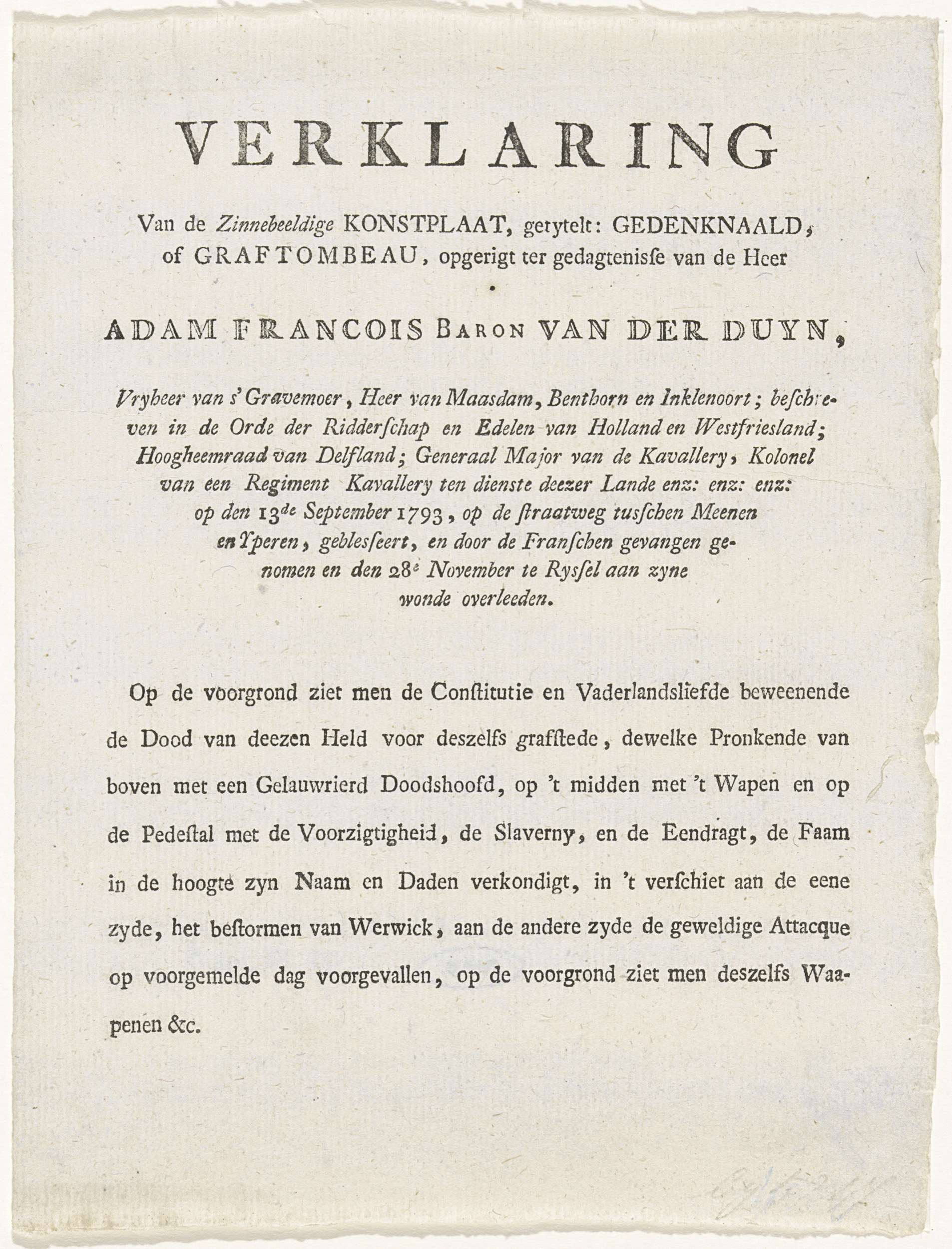 Tekstblad bij de prent met de gedenknaald voor A.F. ...