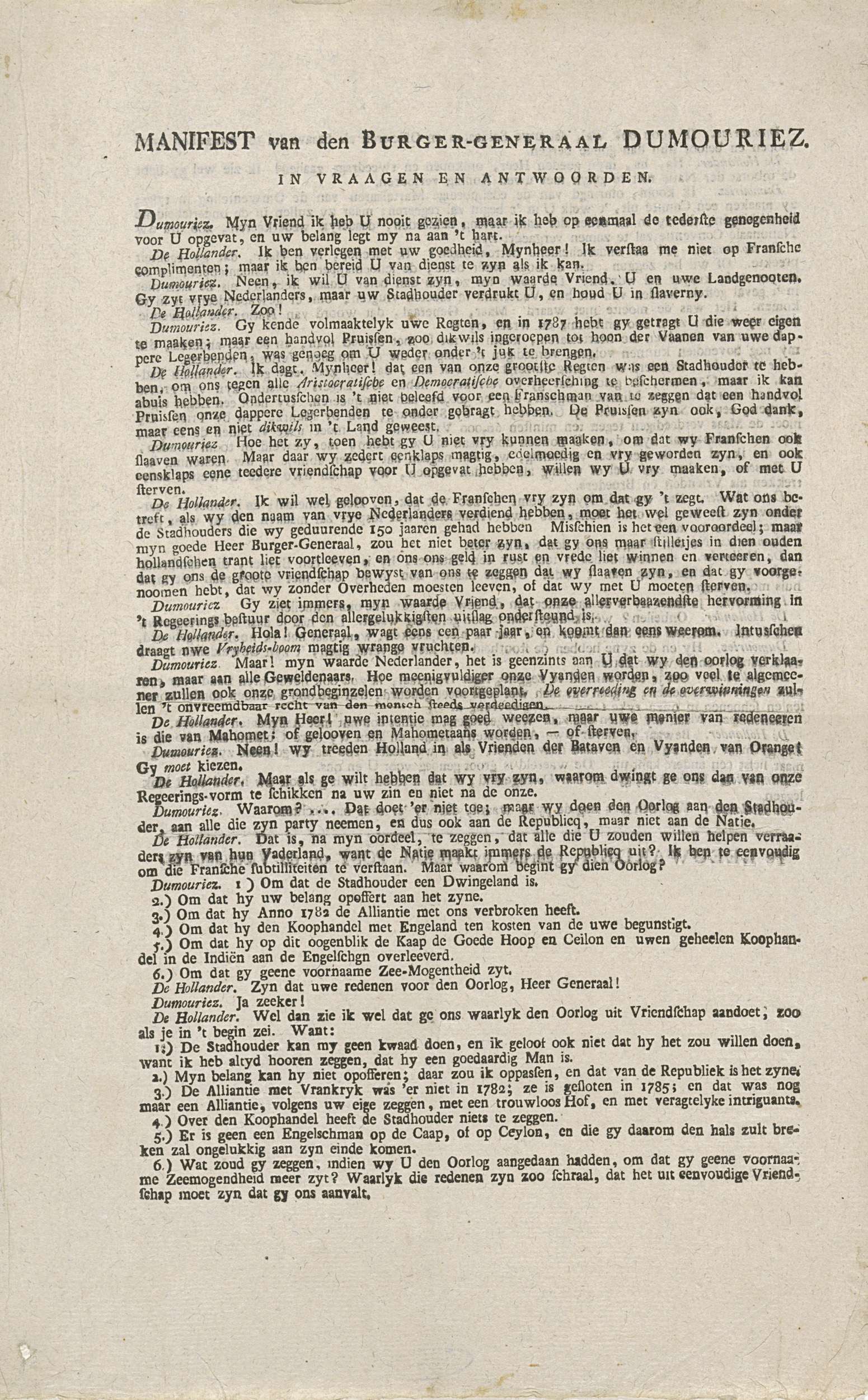 Samenspraak tussen Dumouriez en Hollander, 1793