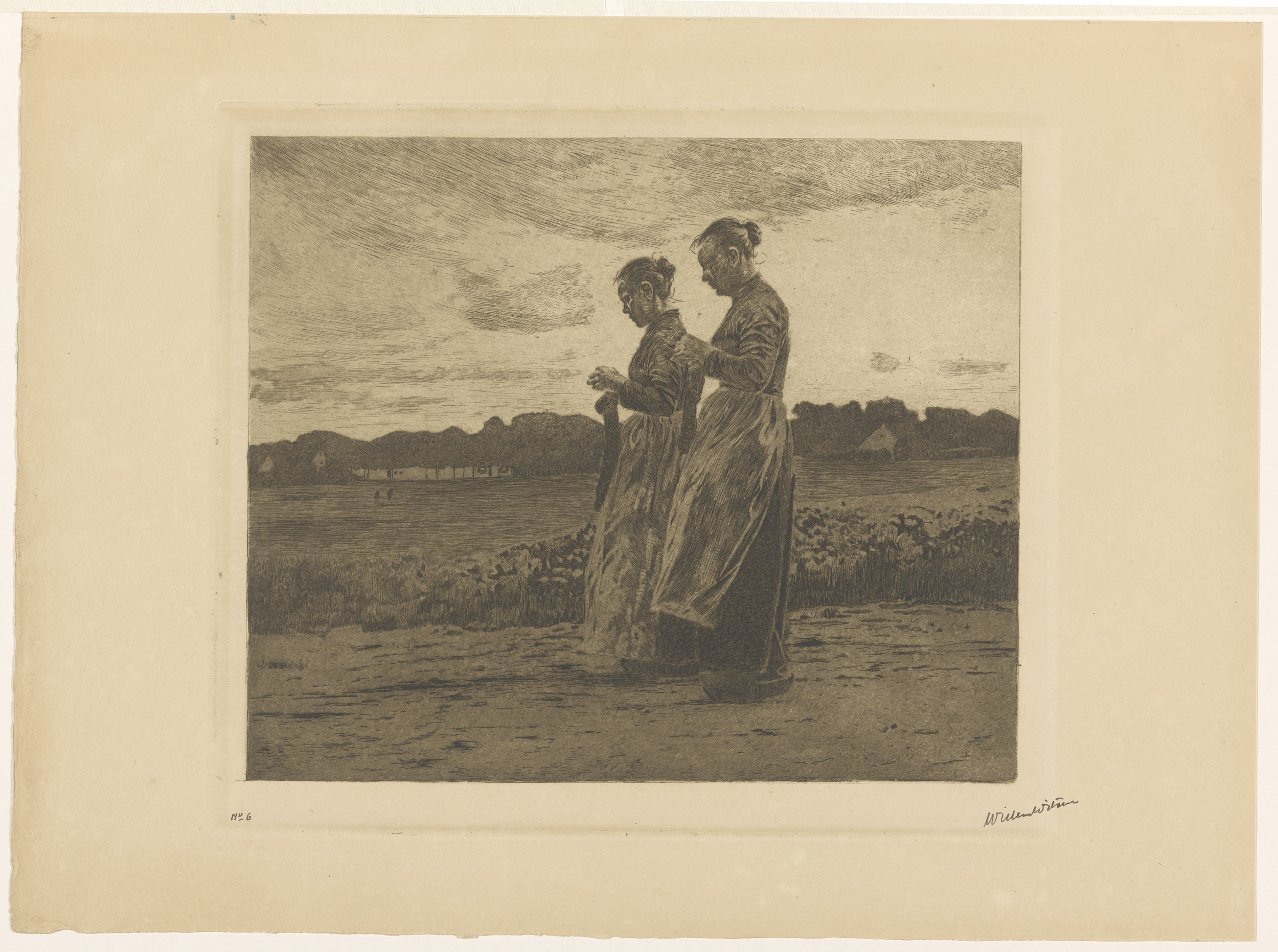 Twee vrouwen die netten boeten, te Katwijk aan Zee