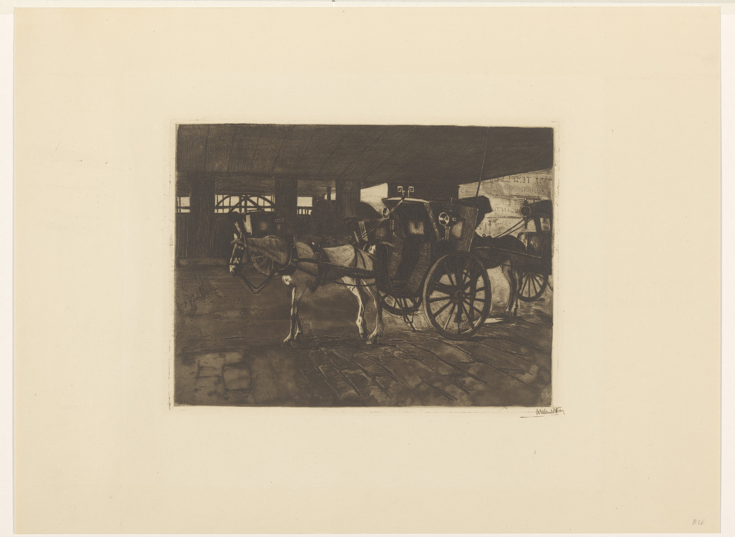 Wachtende rijtuigen onder de Charing Cross Bridge in...