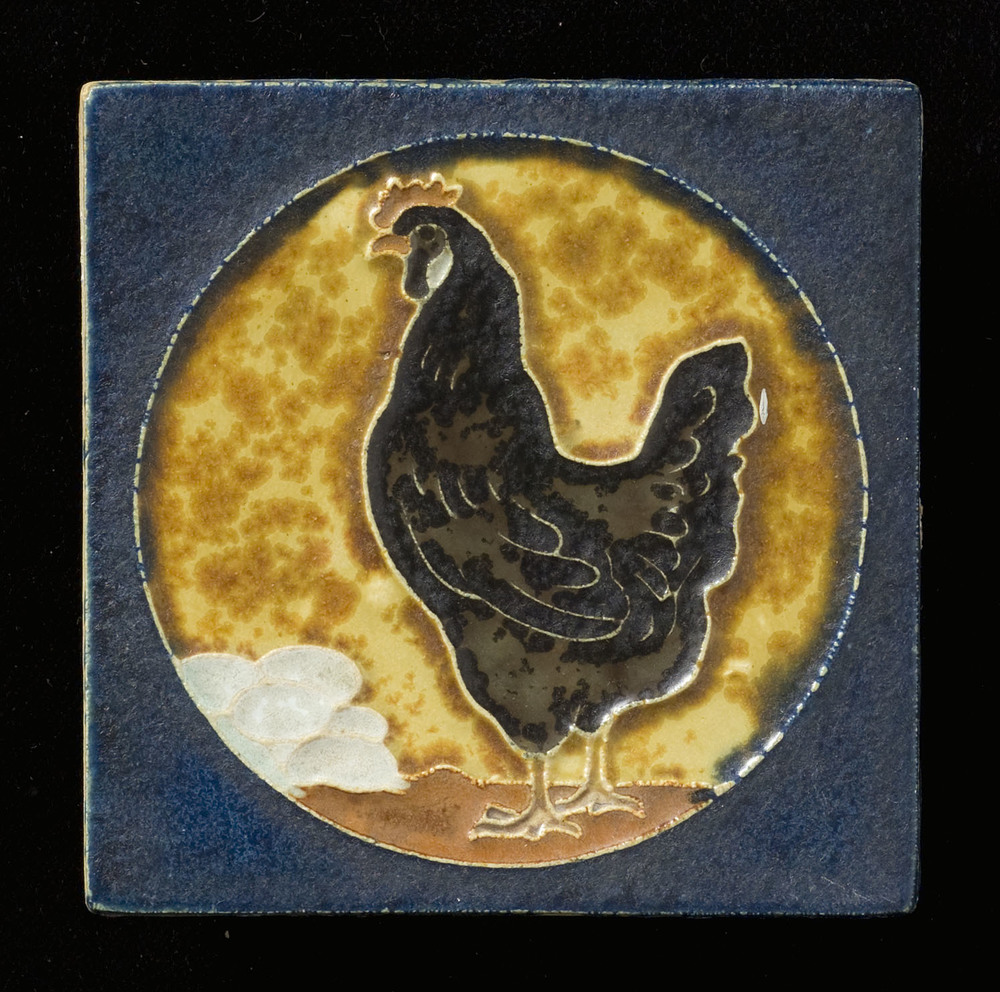 Tegel in cloisonné-techniek, met voorstelling: kip, ...