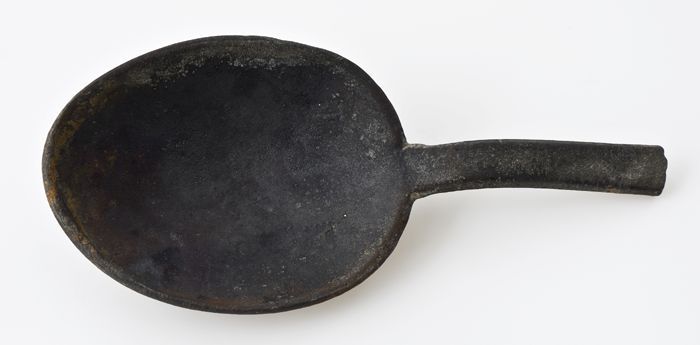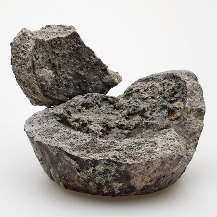 Aardewerk test, rond model, ongeglazuurd, met worsto...