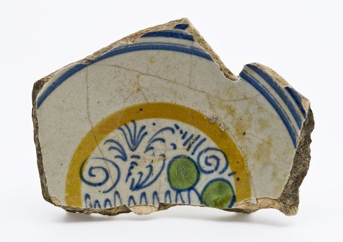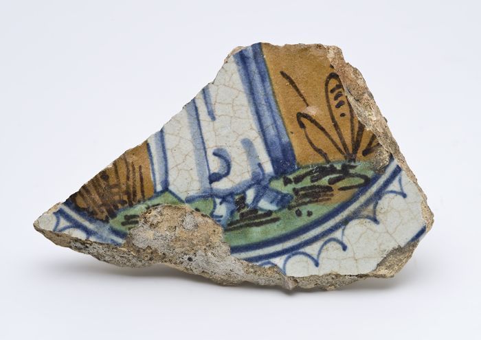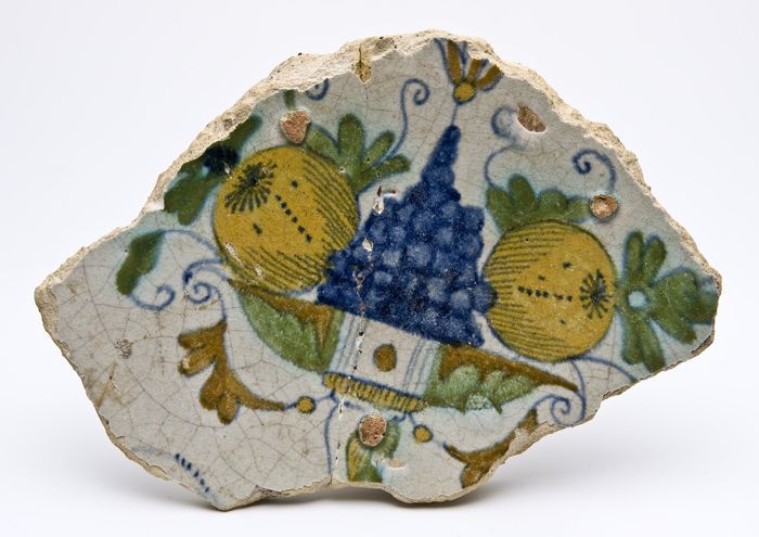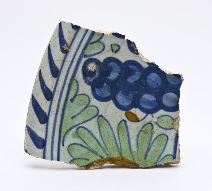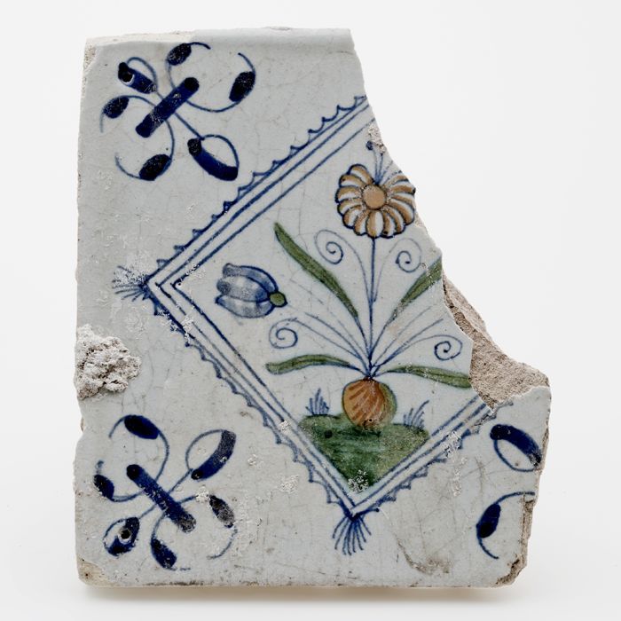 Fragment aardewerk tegel uit vierpas met polychrome ...