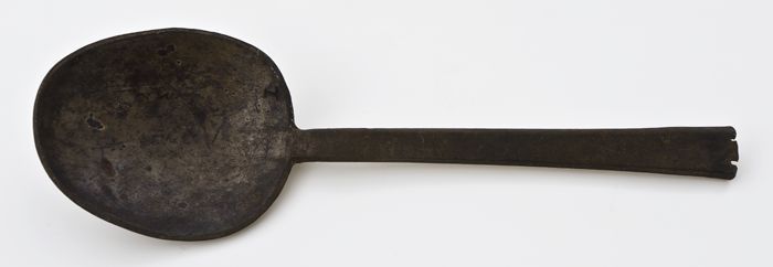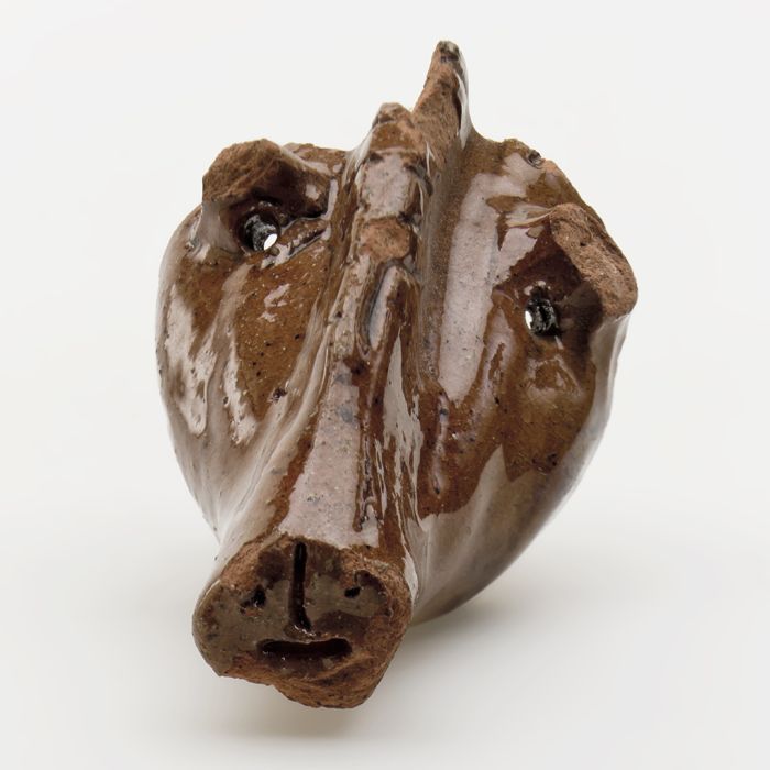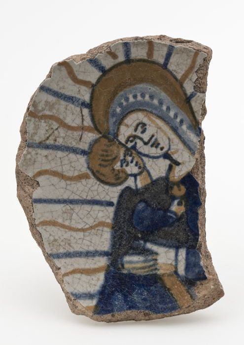 Plavuis, bruin geglazuurd met geel schild met merkteken