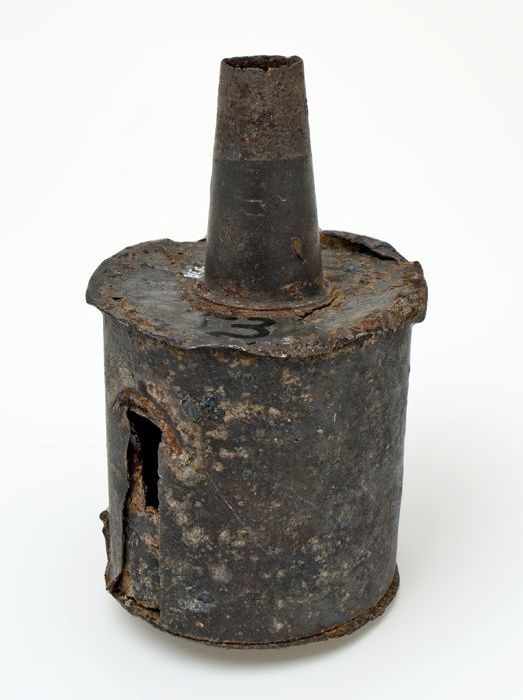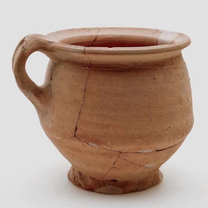 Fragment aardewerk zoutvat of kandelaar, terracotta