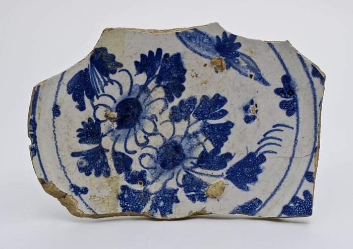 Ziel van majolica schotel met blauwe bloemen in Chin...
