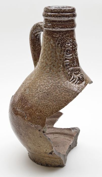 Fragment steengoed kruik met cartouche, bruin geglaz...