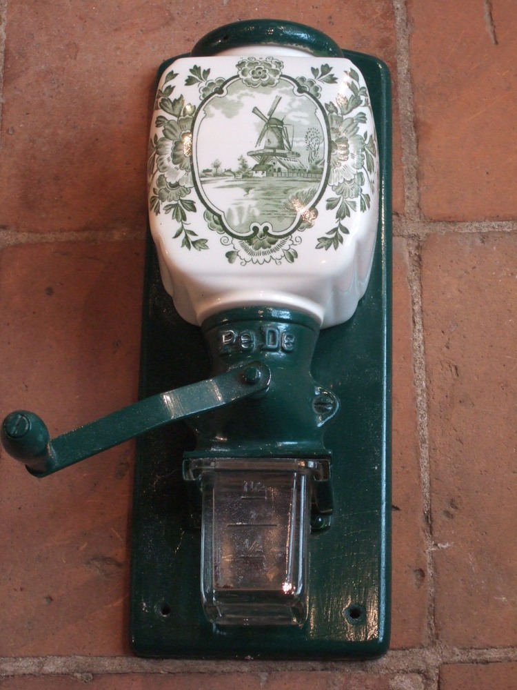 koffiemolen van keramiek en metaal met glazen opvang...