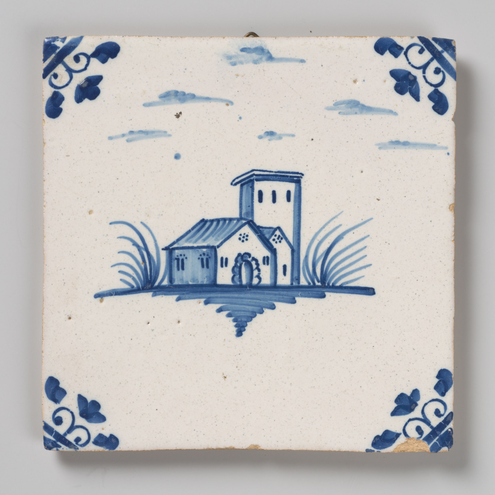 tegel van aardewerk met tinglazuur, voorstellende: k...