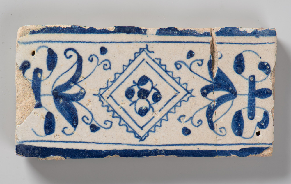 randtegel van keramiek met tinglazuur, voorstellende...