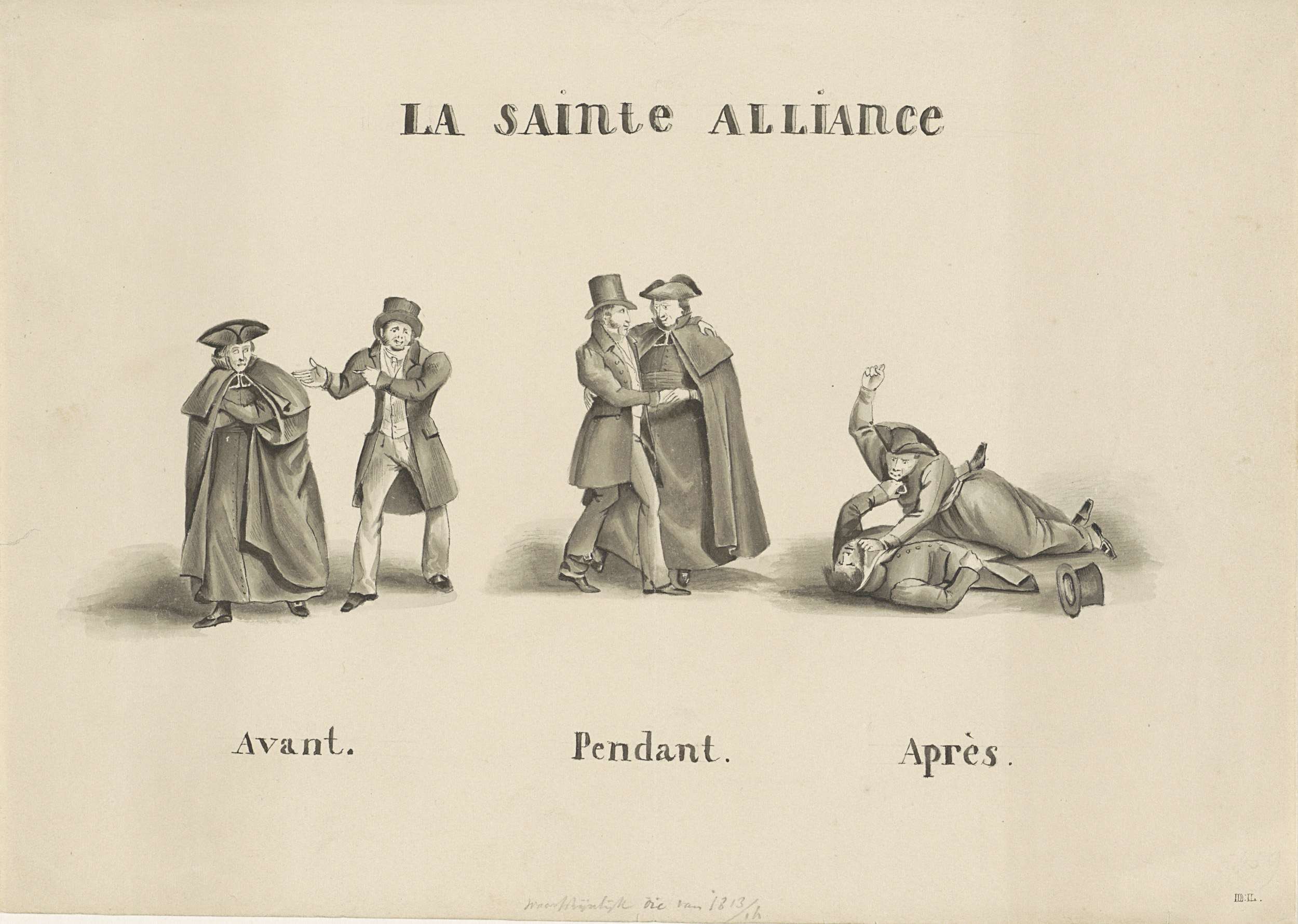 Spotprent op de alliantie gesloten tussen de roomse ...