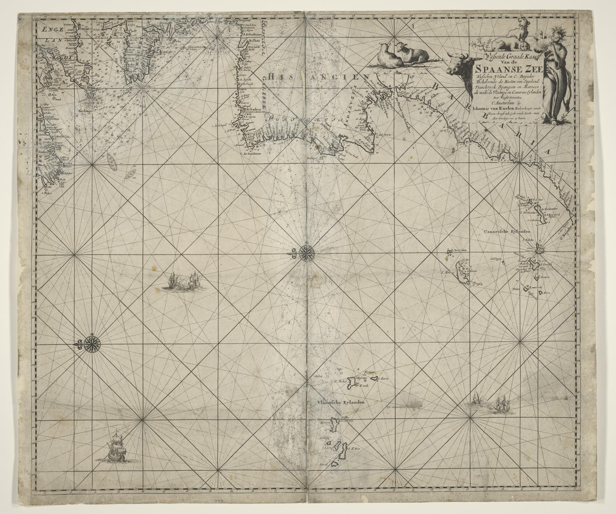 Paskaart van de Atlantische Oceaan, tussen Ierland e...