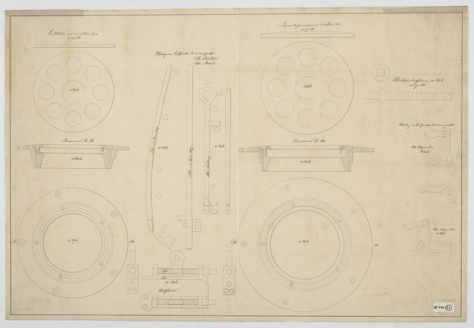Tekening van zestien dwarsdoorsneden van rivierdijke...