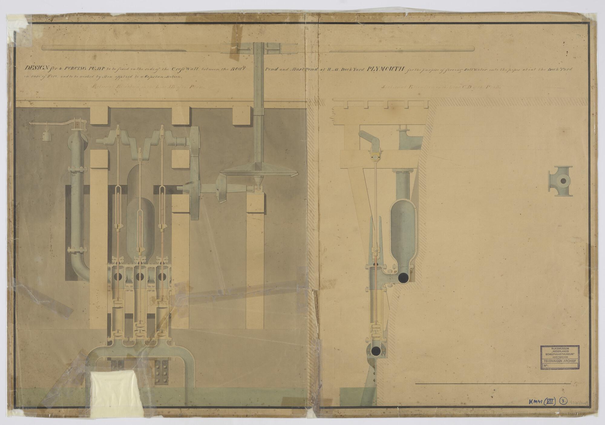 Doorsnede van een zoutwater brandbluspomp bij H.M. D...
