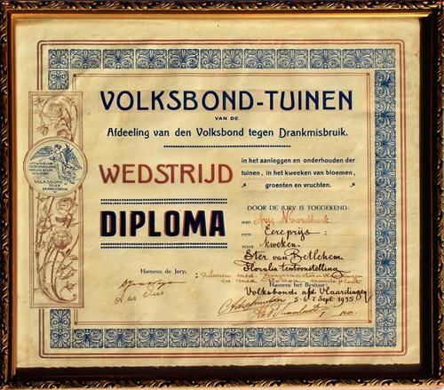Diploma en penningen A. Noordhoek, Volksbond tegen D...