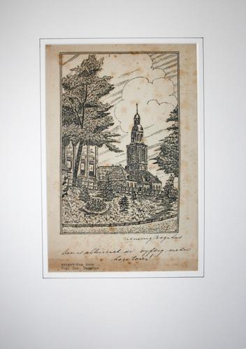 Pentekening. Maassluissedijk met Grote Kerk Vlaardin...