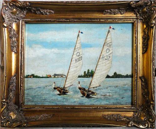 Olieverf op paneel Zeilers op De Bommeer, Vlaardingen.