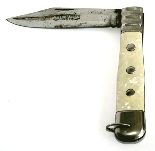 Mes. Metalen knipmes met witte celluloid bekleding S...