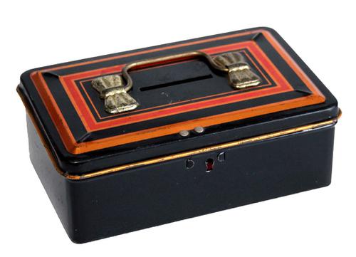 Geldkist / spaarkistje. Rechthoekig metalen geldkis...