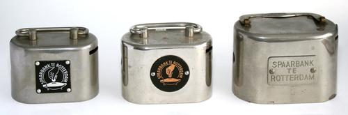 Spaarpotten ‘Spaarbank te Rotterdam’ Drie blanke i...
