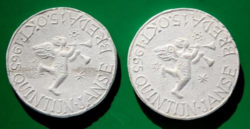 Plaquette van gips, ‘BREDA 15 OKT. 1965 QUINTIJN JAN...