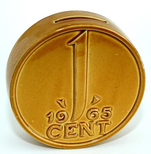 Spaarpot. Koper kleurige keramiek spaarpot in de vo...
