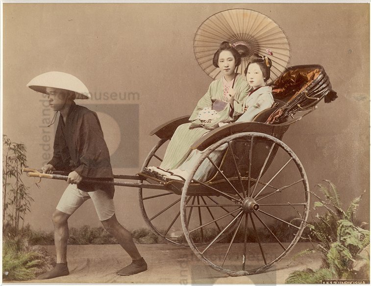Twee vrouwen in een 'Jinrikisha', Japan (187...