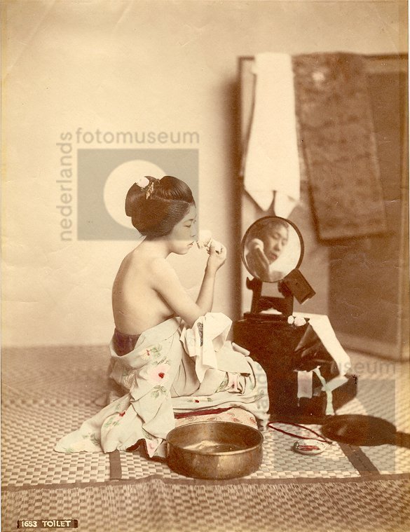 Vrouw maakt toilet, Yokohama, Japan (1863-1885)