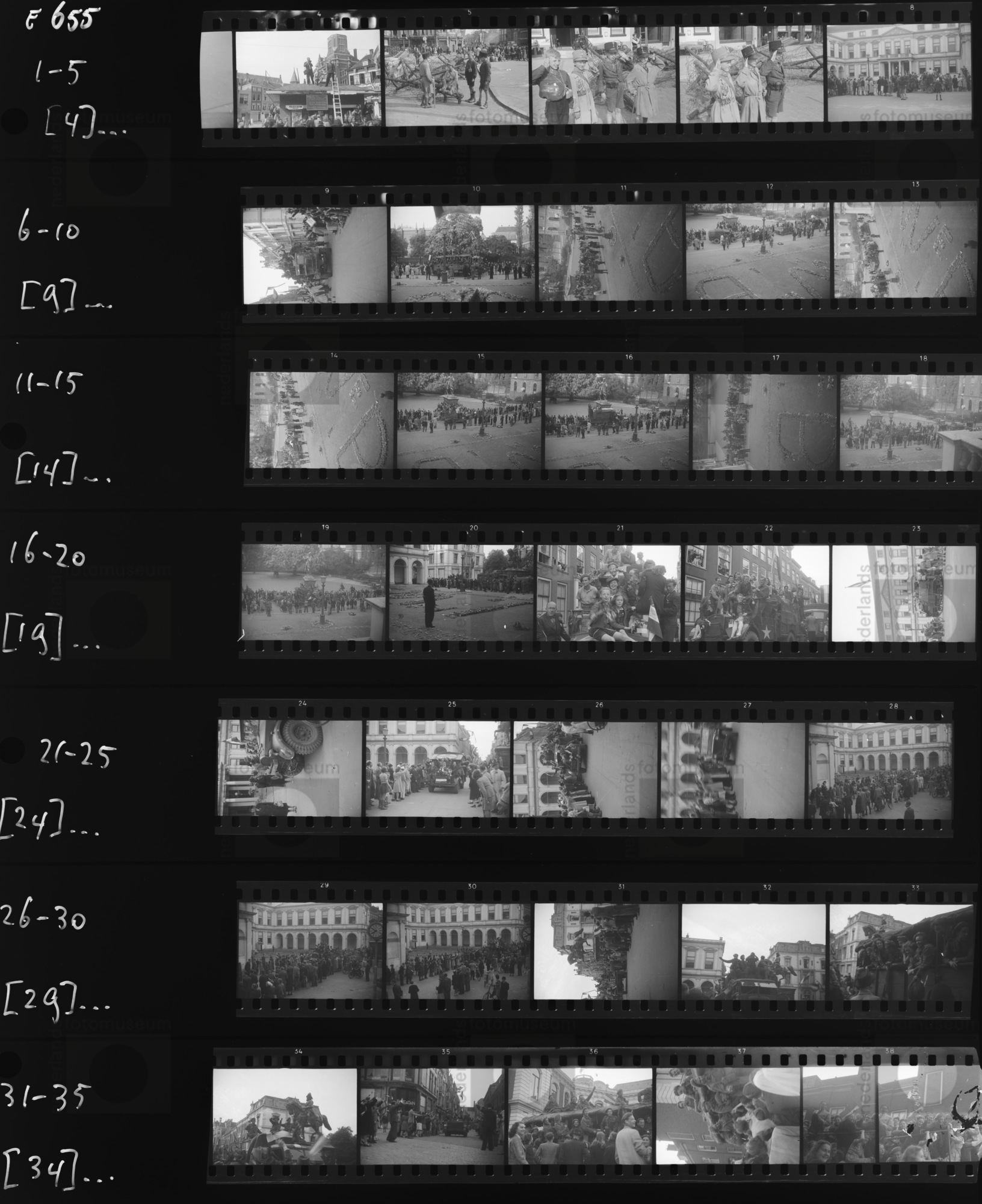 Geallieerde voertuigen rijden tijdens hun intocht vo...