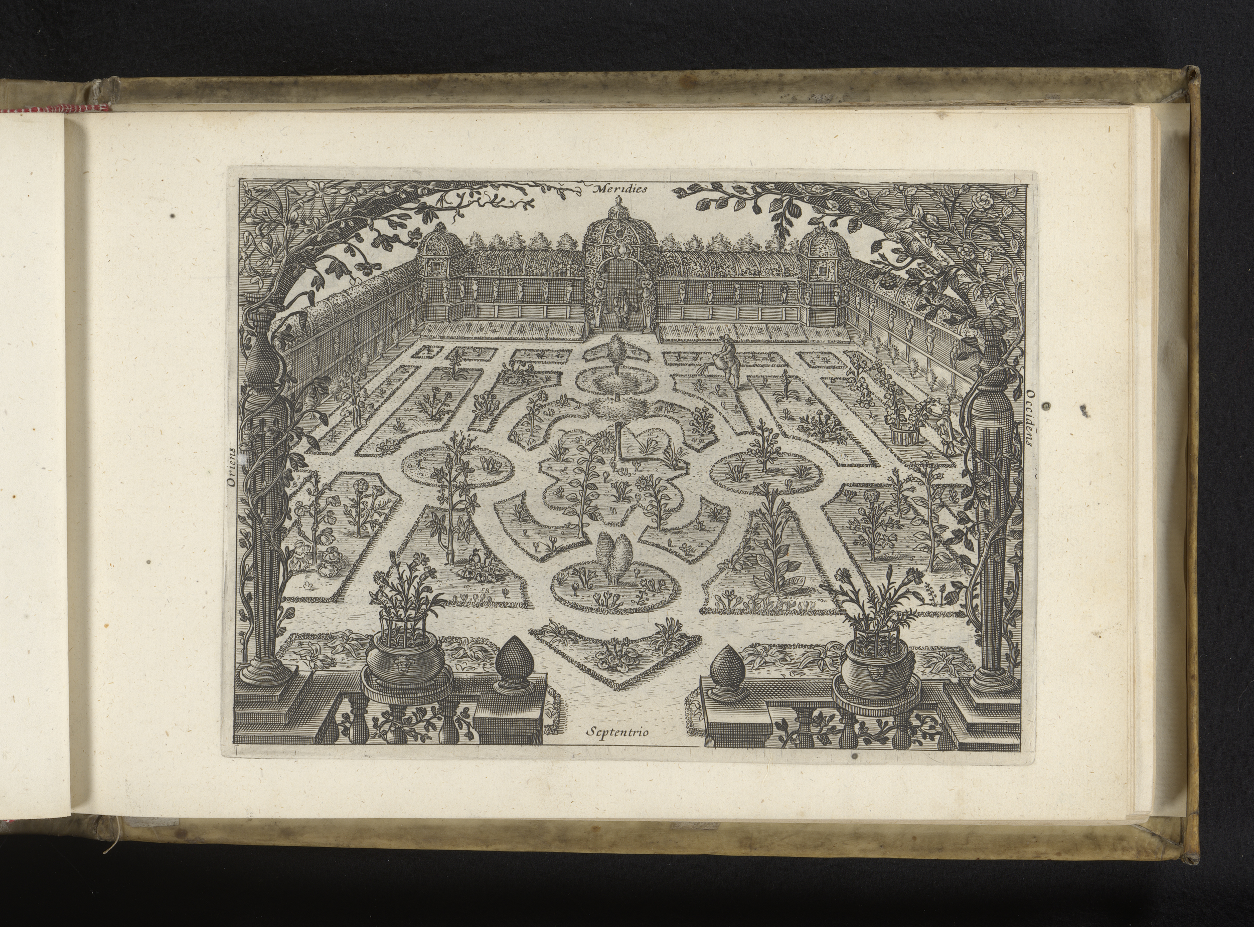 Tuinman met een gieter in een omsloten tuin