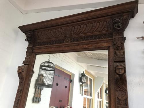 Eikenhouten spiegel met renaissance motieven