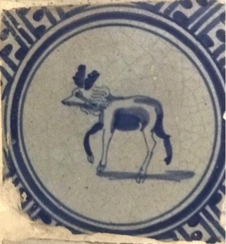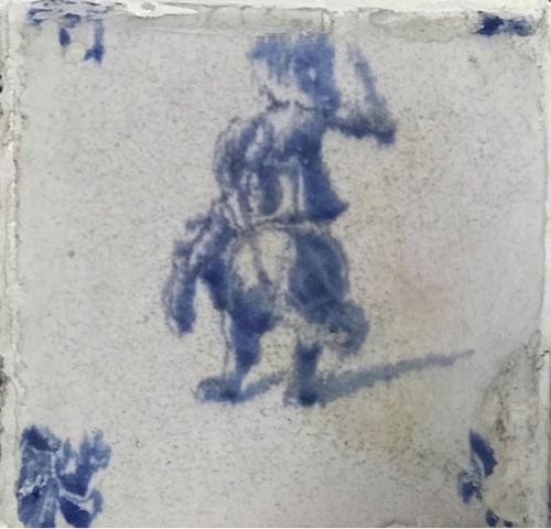 Tegel van aardewerk met tinglazuur voorstellende her...