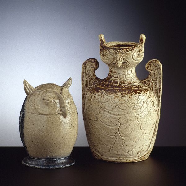 Spaarpot en vaas in de vorm van een uiltje