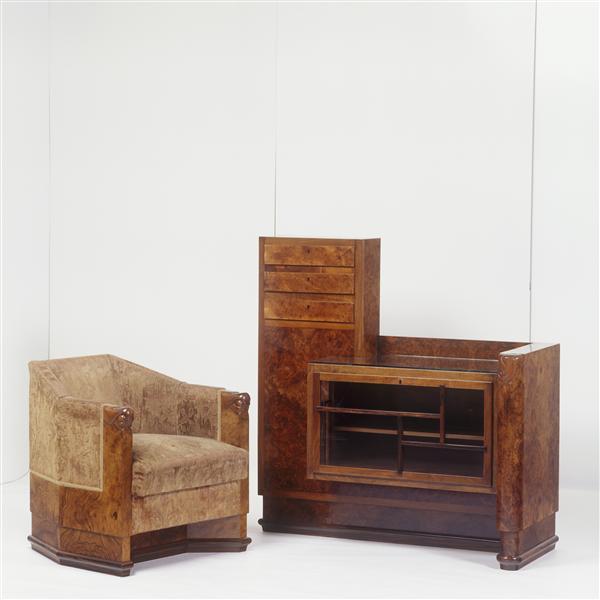 Ameublement bestaande uit een theekast met drie lade...