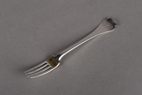 Zilveren vork met uitlopende steel