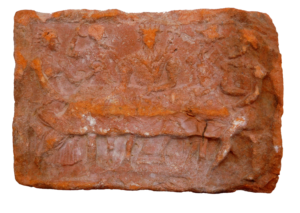 Haardsteen met daarop een tafereel, mogelijk het Laa...