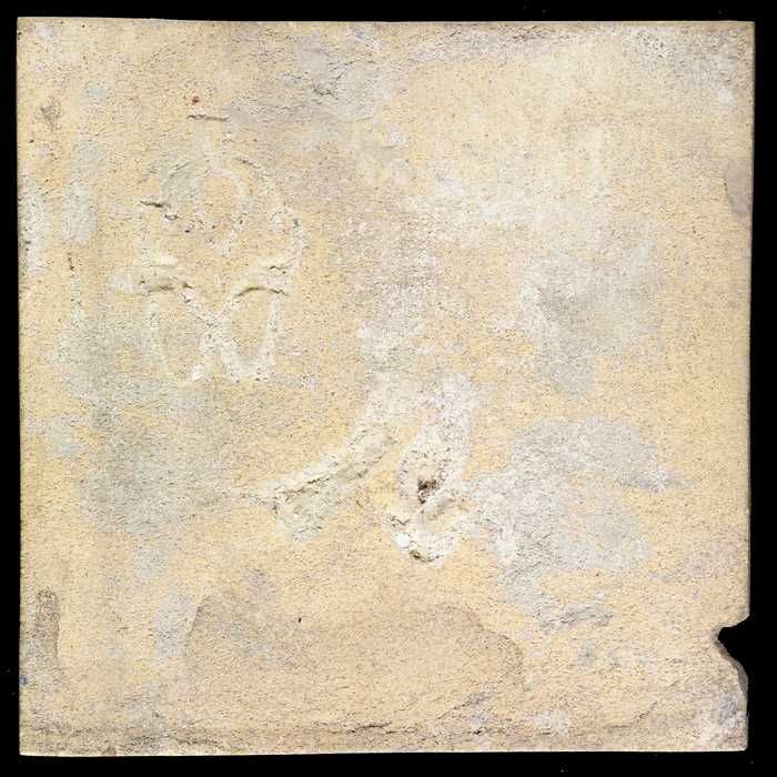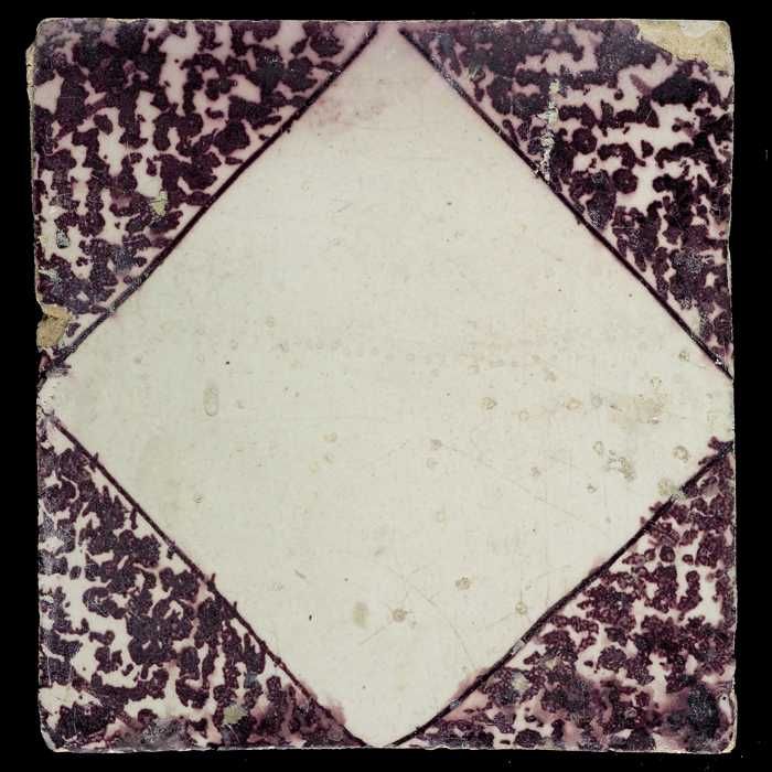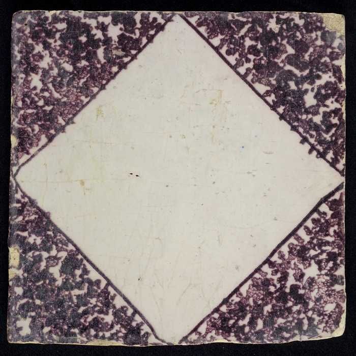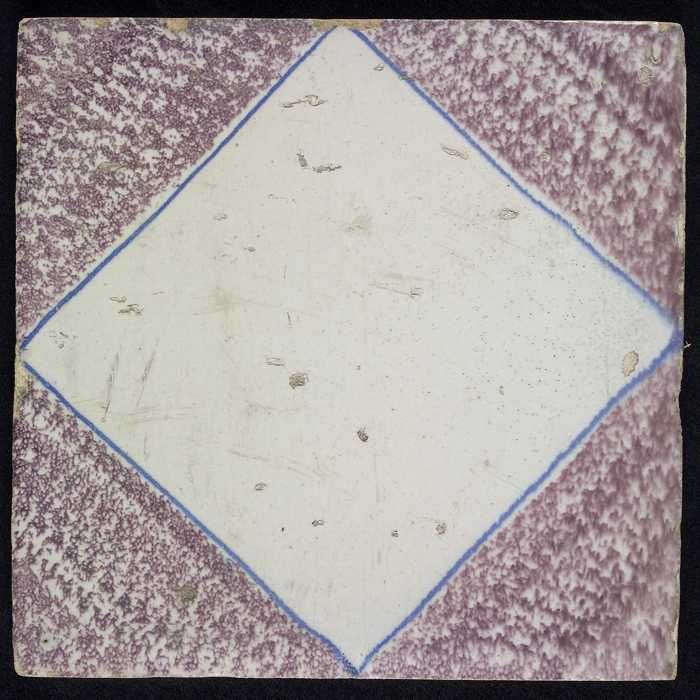 Ornamenttegel, paars op wit, met blanco kwadraat en ...