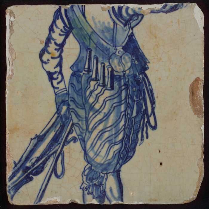 Tegel van tableau met in blauw tors van soldaat