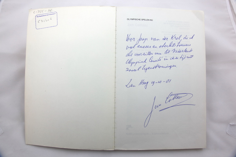 Door Jan Cottaar gesigneerd boek 'Olympische Spelen ...