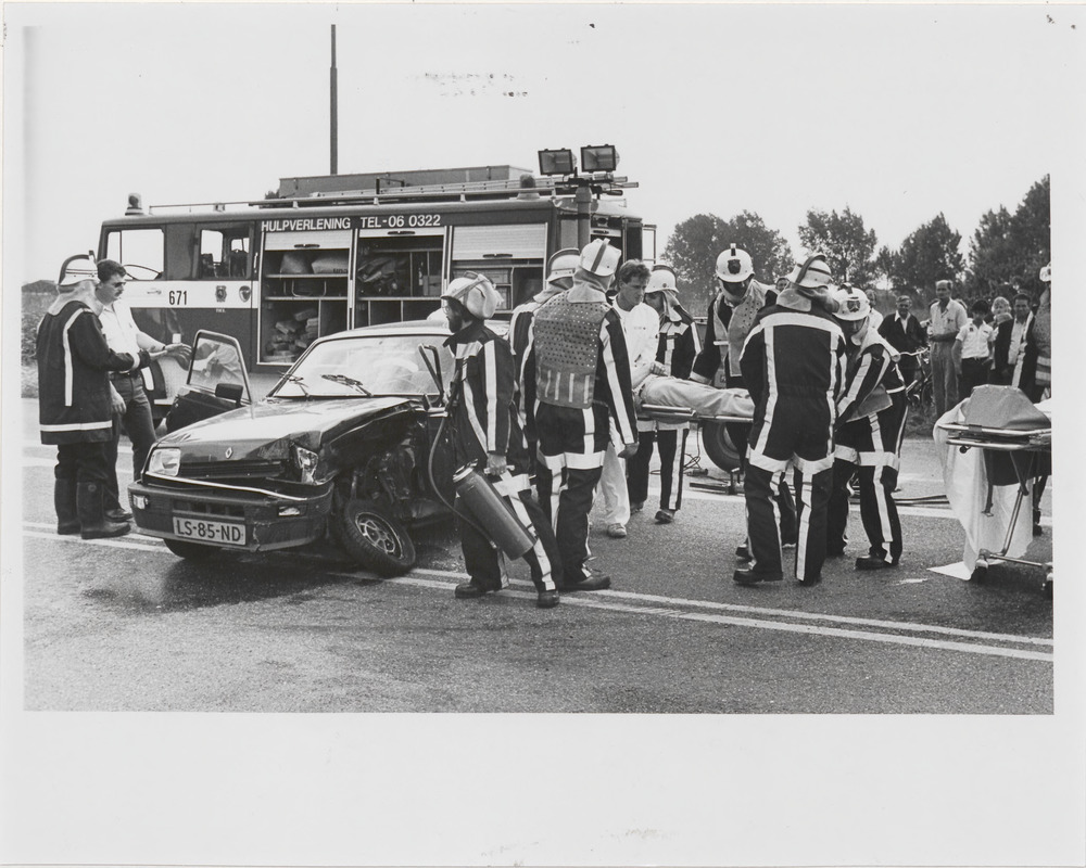 Op de foto een eenzijdig ongeval, ambulance en brand...