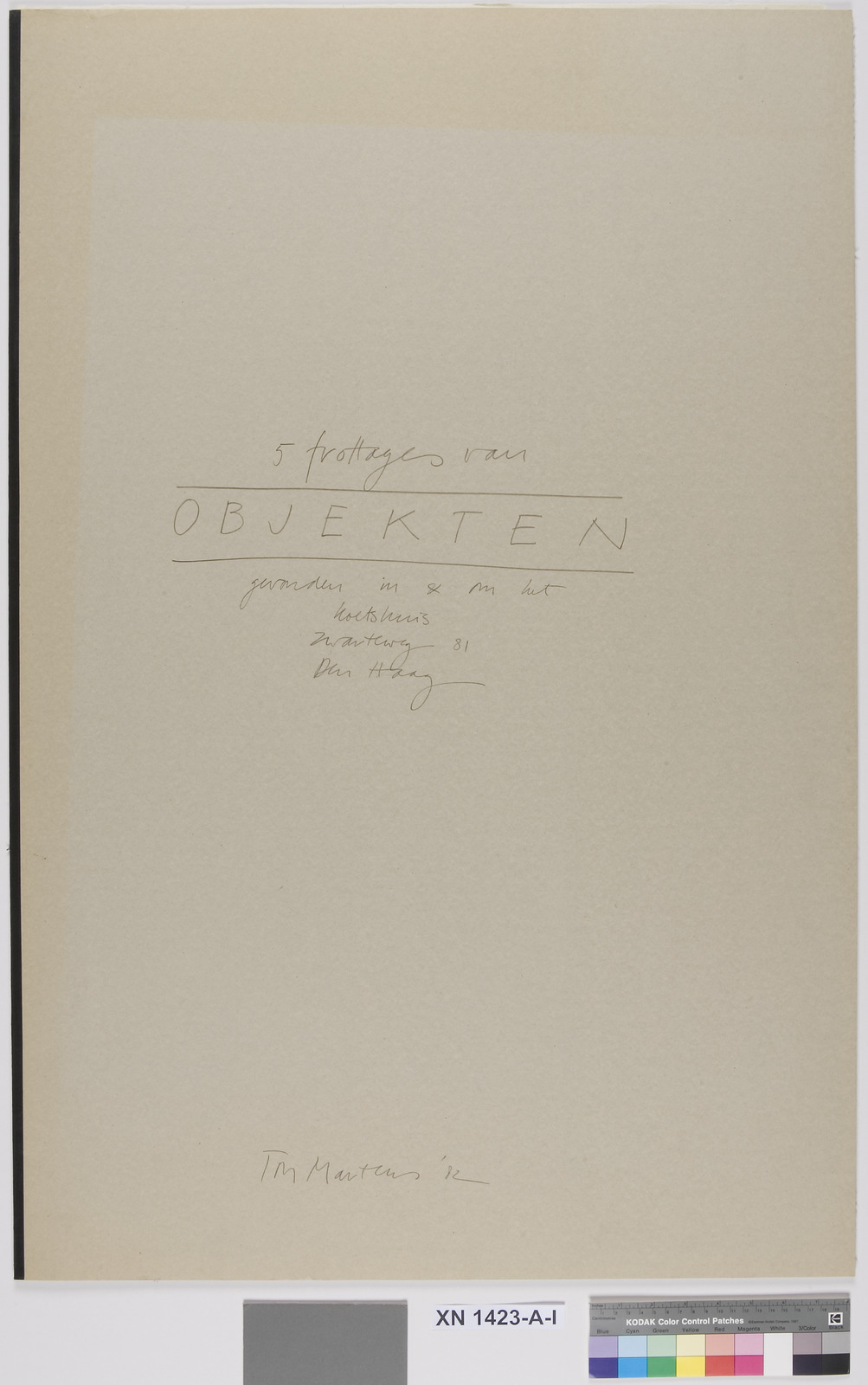 5 frottages van objecten gevonden in & om het koetsh...